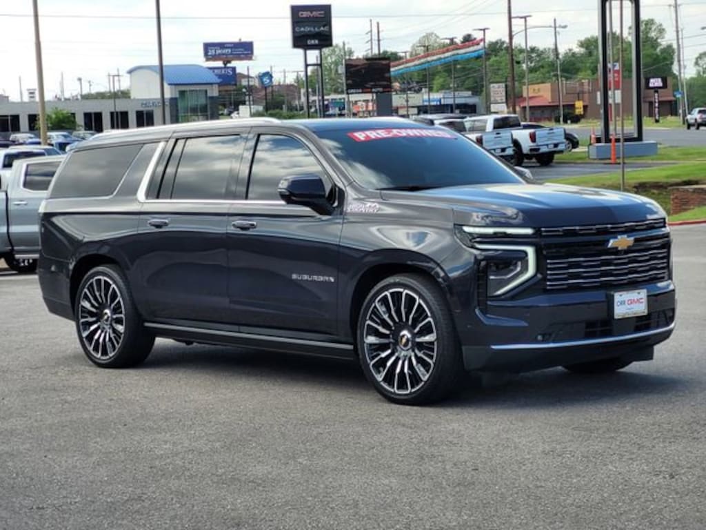 This 2025 Chevrolet Suburban comes equipped with Advanced Security Package (Glass Breakage Sensor, Self-Powered Horn Theft-Deterrent Alarm System, Vehicle Inclination Sensor, and Vehicle Interior Movement Sensor), Advanced Trailering Package (Blind Zone Steering Assist with Trailering, Hitch View with Pan/Zoom Image Adjustment, and Smart Trailer Integration Indicator), High Country Deluxe (Air Ride Adaptive Suspension, Dual-Pane Power Panoramic Sunroof, and Power-Retractable Assist Steps), License Plate Front Mounting Package, Max Trailering Package (2-Speed Active Electronic AutoTrac Transfer Case, Extra Capacity Cooling System, Hill Descent Control, and Integrated Trailer Brake Controller), Preferred Equipment Group 3LZ (15 Diagonal Multi-Color Head-Up Display, 3rd Row 60/40 Power-Folding Split-Bench, 4-Way Power Driver Lumbar Seat Adjuster, 4-Way Power Front Passenger Lumbar Seat Adjuster, 8-Way Power Front Passenger Seat Adjuster, Bose 10-Speaker Surround with CenterPoint, Bright Front and Rear Door Sill Plates, Chrome Door Handles with Body-Color Strip, Dual Exhaust System, Front LED Fog Lamps, Heated 2nd Row Outboard Seats, Heated Driver and Front Passenger Seats, Heated Power-Adjustable Outside Mirrors, Heated Steering Wheel, Inside Rearview Auo-Dimming Rear Camera Mirror, LED Headlamps with LED Daytime Running Lamps, LED Tail Lamps, Magnetic Ride Control Suspension, Memory Settings, Perforated Heated and Ventilated Seats, Power Release 2nd Row Bucket Seats, Power Tilt and Telescopic Steering Column, Power-Sliding Center Floor Console, Rear Power Liftgate, Universal Home Remote, Wheels: 22 x 9 Bright Machined Aluminum, Wireless Phone Charging, and Wheel Locks (set of 4)), Premium Liner Protection Package (3rd Row All-Weather Floor Liners, All-Weather Cargo Mat, and First and Second Rows Premium Floor Liners), Technology & Entertainment Package (Rear Seat Media System), Technology Package (AutoSense Hands-Free Power Liftgate), Navigation system: Google built-in compatibility (select service plan required, terms and limitations apply), 1.5 KW Heater/Defrost Air System, 10 Speakers, 250 Amps Alternator, 3.23 Rear Axle Ratio, 3rd row seats: split-bench, 4-Wheel Disc Brakes, 8-Way Power Driver Seat Adjuster, 850 Cold-Cranking Amps Battery, ABS brakes, Adaptive suspension, Air Conditioning, Alloy wheels, AM/FM radio: SiriusXM with 360L, Apple CarPlay/Android Auto, Auto High-beam Headlights, Auto-dimming door mirrors, Auto-dimming Rear-View mirror, Auto-leveling suspension, Automatic temperature control, Brake assist, Bumpers: body-color, Compass, Delay-off headlights, Diesel B20 Fuel, Driver door bin, Driver vanity mirror, Dual front impact airbags, Dual front side impact airbags, Electronic Stability Control, Emergency communication system: OnStar Services capable, Engine Block Heater, Exterior Parking Camera Rear, Four wheel independent suspension, Front anti-roll bar, Front Bucket Seats, Front Center Armrest, Front dual zone A/C, Front fog lights, Front reading lights, Fully automatic headlights, Garage door transmitter, Heads-Up Display, Heated door mirrors, Heated front seats, Heated rear seats, Heated steering wheel, Illuminated entry, Low tire pressure warning, Memory seat, Occupant sensing airbag, Outside temperature display, Overhead airbag, Overhead console, Panic alarm, Passenger door bin, Passenger vanity mirror, Perforated Leather Seating Surfaces, Power door mirrors, Power driver seat, Power Liftgate, Power passenger seat, Power steering, Power windows, Radio data system, Radio: 17.7 Diagonal Advanced Color LCD Display, Rain sensing wipers, Rear air conditioning, Rear anti-roll bar, Rear reading lights, Rear window defroster, Rear window wiper, Remote keyless entry, Security system, SiriusXM with 360L Trial Subscription, Speed control, Speed-sensing steering, Split folding rear seat, Spoiler, Steering wheel memory, Steering wheel mounted audio controls, Tachomete