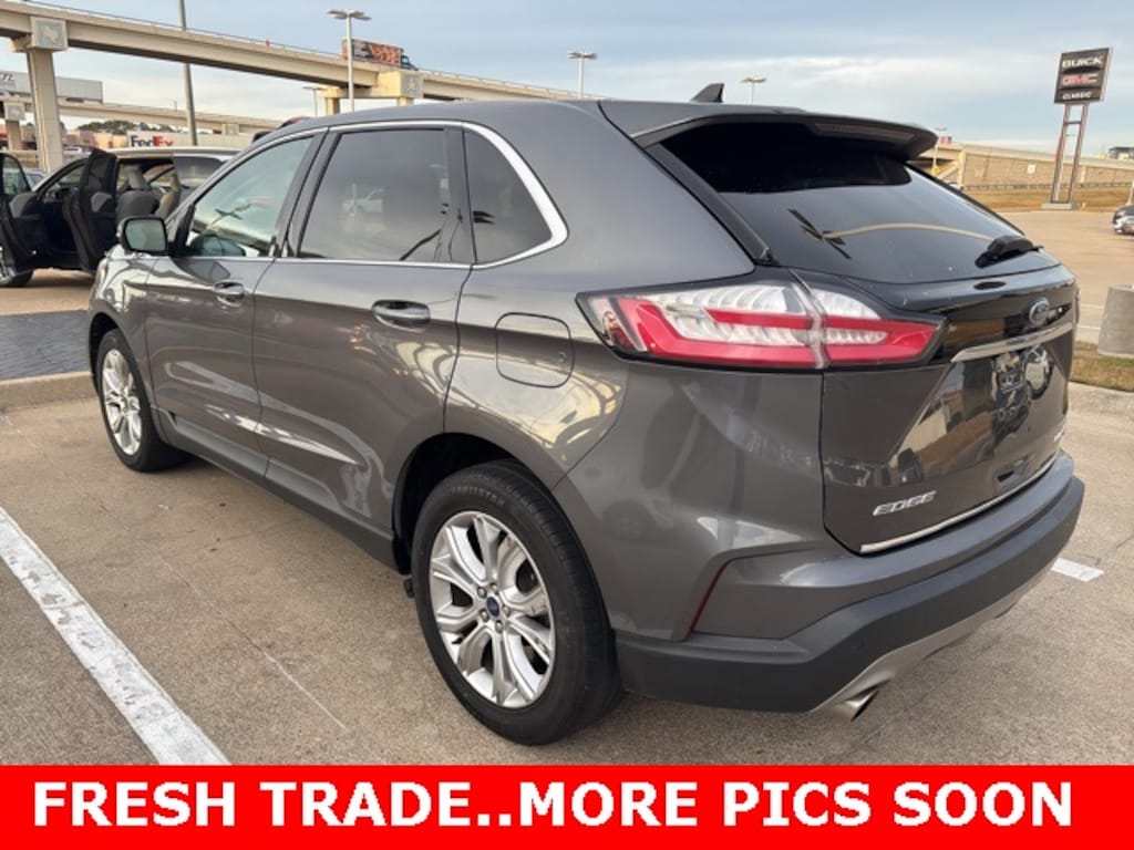 This 2022 Ford Edge comes equipped with the following features Equipment Group 301A (Adaptive Cruise Control w/Stop & Go, Adaptive LED Headlamps, Auto-Dimming Driver's Sideview Mirror, Connected Built-In Navigation, Evasive Steering Assist, Front 180-Degree Camera w/Split View, Heated Rear Seats, Lane Centering, Leather-Trimmed Heated/Cooled Sport Bucket Seats, and Power Tilt/Telescoping Steering Column w/Memory), AWD, 12 Speakers, 3.80 Axle Ratio, 4-Wheel Disc Brakes, ABS brakes, Air Conditioning, Alloy wheels, AM/FM radio: SiriusXM with 360L, Auto High-beam Headlights, Auto-dimming Rear-View mirror, Automatic temperature control, Brake assist, Bumpers: body-color, Compass, Delay-off headlights, Driver door bin, Driver vanity mirror, Dual front impact airbags, Dual front side impact airbags, Electronic Stability Control, Emergency communication system: SYNC 4 911 Assist, FordPass Connect, Four wheel independent suspension, Front anti-roll bar, Front Bucket Seats, Front Center Armrest w/Storage, Front dual zone A/C, Front fog lights, Front License Plate Bracket, Front reading lights, Fully automatic headlights, Garage door transmitter, Heated door mirrors, Heated front seats, Heated steering wheel, Illuminated entry, Knee airbag, Leather-Trimmed Heated Sport Bucket Seats, Low tire pressure warning, Memory seat, Occupant sensing airbag, Outside temperature display, Overhead airbag, Overhead console, Panic alarm, Passenger door bin, Passenger vanity mirror, Power door mirrors, Power driver seat, Power Liftgate, Power passenger seat, Power steering, Power windows, Radio: B&O Sound System by Bang & Olufsen, Rain sensing wipers, Rear anti-roll bar, Rear reading lights, Rear seat center armrest, Rear window defroster, Rear window wiper, Remote keyless entry, Security system, SiriusXM w/360L, Speed control, Speed-Sensitive Wipers, Split folding rear seat, Spoiler, Steering wheel mounted audio controls, SYNC 4A w/Enhanced Voice Recognition, Tachometer, Telescoping steering wheel, Tilt steering wheel, Traction control, Trip computer, Turn signal indicator mirrors, Variably intermittent wipers, and Wheels: 19" Luster Nickel-Painted Aluminum. AWD. 2022 Ford Edge Titanium AWD EcoBoost 2.0L I4 GTDi DOHC Turbocharged VCT