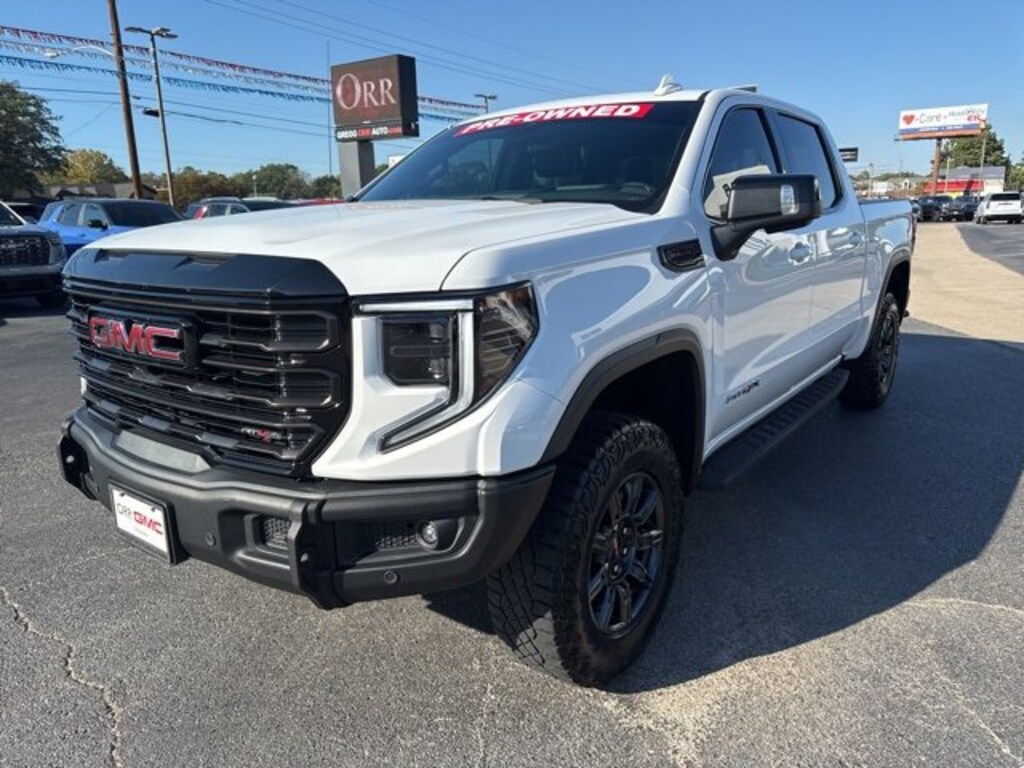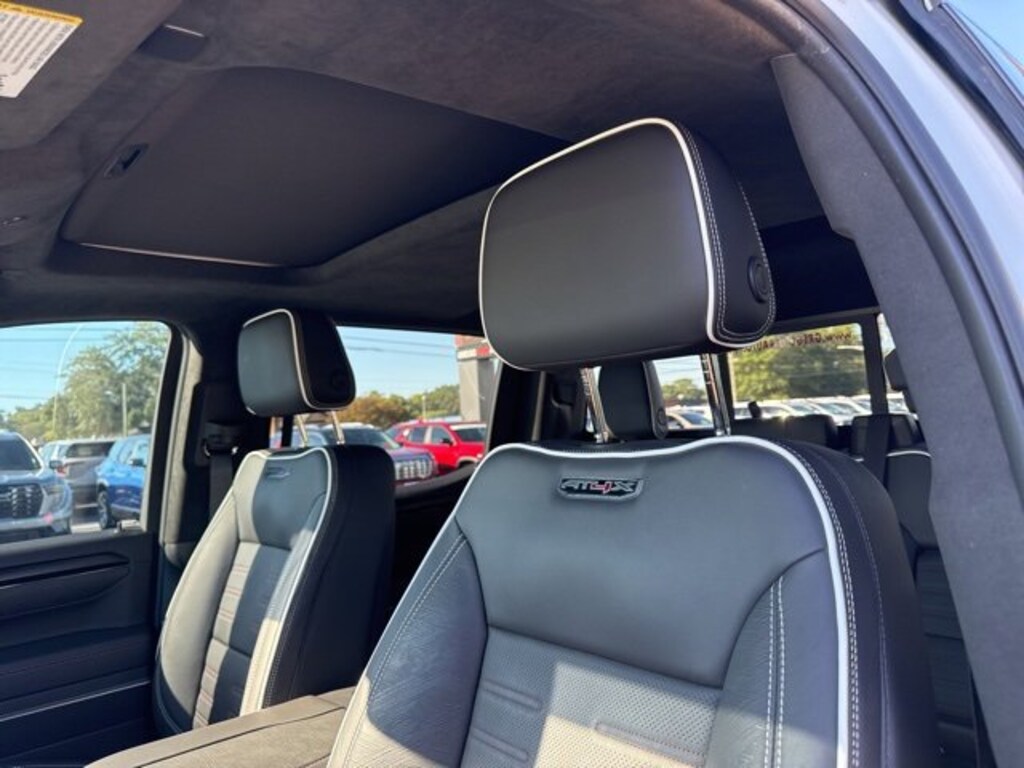 This 2024 GMC Sierra 1500 comes equipped with Preferred Equipment Group 4SG (120-Volt Bed Mounted Power Outlet, 120-Volt Interior Power Outlet, 2 Charge/Data USB Ports Inside Center Console, 2 Type-C Charge-Only Rear USB Ports, 2 USB Ports, Bed View Camera, Bose Premium Series w/12-Speaker System, Color-Keyed Carpeting Floor Covering, Deep-Tinted Glass, Driver-Selectable Full-Locking Front Differential, Driver-Selectable Full-Locking Rear Differential, Electric Rear-Window Defogger, Floor-Mounted Center Console, Front Prem Floor Liners w/Removable Carpet Insert, Front Rain-Sensing Wipers, Gloss Black Header w/Drk Nickel Grille Insert Bars, GMC Connected Access Capable, HD Surround Vision, Heated 2nd Row Outboard Seats, Heated Driver & Front Outboard Passenger Seating, Heavy-Duty Air Filter, Hill Descent Control, Hitch View, In-Vehicle Trailering System App, Integrated Trailer Brake Controller, Keyless Open & Start, LED Cargo Area Lighting, Multicolor 15 Diagonal Head-Up Display, MultiPro Tailgate Audio System by Kicker (LPO), OnStar & GMC Connected Services Capable, Perimeter Lighting, Power Door Locks, Power Front Passenger Windows w/Express Up/Down, Power Front Windows w/Driver Express Up/Down, Power Rake & Telescoping Steering Column, Power Rear Windows w/Express Down, Power Sliding Rear Window w/Rear Defogger, Power Sunroof, Push Button Start, Rear Cross Traffic Braking, Rear Pedestrian Detection, Rear Prem Floor Liners w/Removable Carpet Insert, Rear Wheelhouse Liners, Remote Vehicle Starter System, SiriusXM w/360L, Spray-On Pickup Bedliner w/AT4X Logo, Steering Wheel Audio Controls, Theft Deterrent System (Unauthorized Entry), Trailer Camera Provisions, Trailer Side Blind Zone Alert, Trailer Tire Pressure Monitor System, Ultrasonic Front & Rear Park Assist, Universal Home Remote, Ventilated Driver & Front Passenger Seats, Wi-Fi Hotspot Capable, and Wireless Charging), Trailering Package (Hitch Guidance), 10-Speed Automatic, 4WD, Obsidian Rush Leather, 12 Speakers, 16-Way Power Driver Seat Adjuster w/Lumbar, 16-Way Power Passenger Seat Adjuster w/Lumbar, 170 Amp Alternator, 220 Amp Alternator, 3.23 Rear Axle Ratio, 4-Wheel Disc Brakes, ABS brakes, Air Conditioning, Alloy wheels, AM/FM radio: SiriusXM with 360L, Apple CarPlay/Android Auto, Auto High-beam Headlights, Auto-dimming door mirrors, Auto-dimming Rear-View mirror, Automatic Emergency Braking, Automatic temperature control, Auxiliary External Transmission Oil Cooler, Block heater, Brake assist, Buckle to Drive, Compass, Delay-off headlights, Driver door bin, Driver Memory, Driver vanity mirror, Dual Active Exhaust, Dual front impact airbags, Dual front side impact airbags, Electronic Stability Control, External Engine Oil Cooling, Following Distance Indicator, Forward Collision Alert, Front anti-roll bar, Front Bucket Seats, Front Center Armrest, Front dual zone A/C, Front fog lights, Front License Plate Kit, Front Pedestrian Braking, Front reading lights, Front wheel independent suspension, Full Grain Leather Seat Trim, Fully automatic headlights, Garage door transmitter, Genuine wood dashboard insert, Genuine wood door panel insert, Heads-Up Display, Heated door mirrors, Heated front seats, Heated rear seats, Heated steering wheel, Illuminated entry, IntelliBeam Automatic High Beam On/Off, Lane Keep Assist w/Lane Departure Warning, Low tire pressure warning, Memory seat, Navigation System, Occupant sensing airbag, Off-Road High Clearance Step (LPO), Off-Road Suspension, Outside temperature display, Overhead airbag, Overhead console, Panic alarm, Passenger door bin, Passenger vanity mirror, Power door mirrors, Power driver seat, Power moonroof, Power passenger seat, Power steering, Power windows, Premium audio system: GMC Infotainment System, Radio data system, Radio: Premium GMC Infotainment Audio System, Rain sensing wipers, Rear reading lights, Rear seat center armrest, Rear step bumper, Rear Underseat Storage (LPO), Rear window defroster, Remote keyless entry