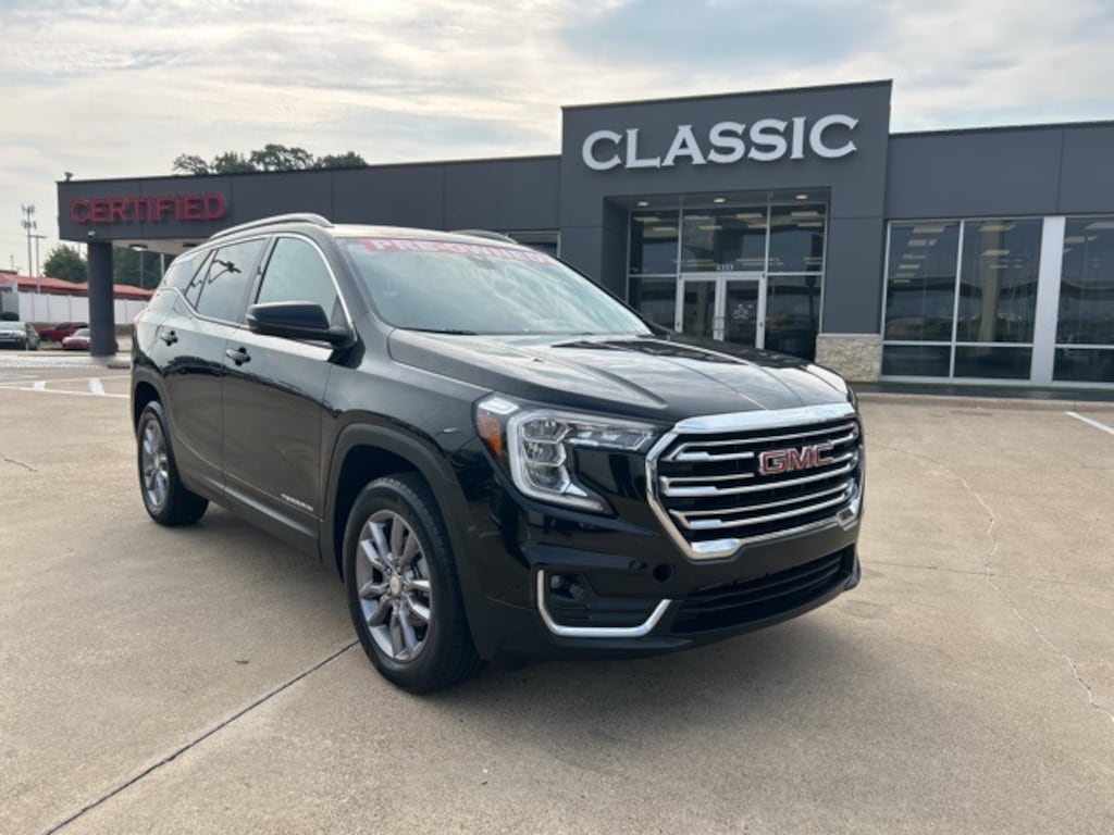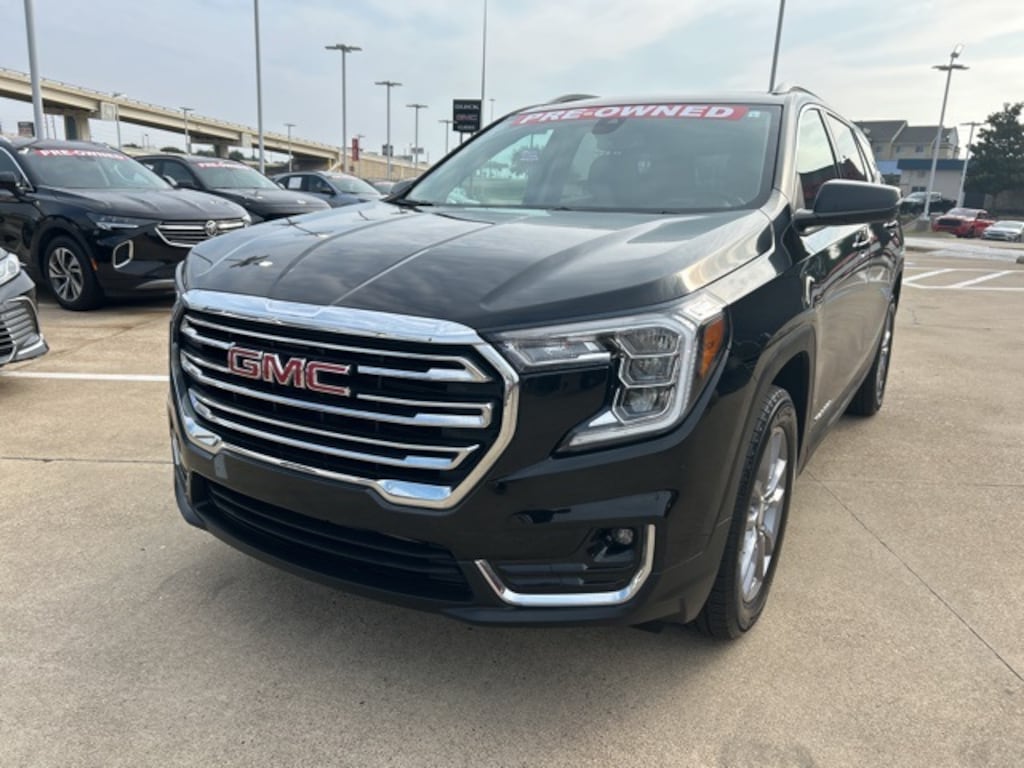 This 2024 GMC Terrain comes equipped with the following features Preferred Equipment Group 4SA, AWD, 2 USB Data Ports, 2 USB Data Ports w/SD Card Reader, 3.47 Final Drive Axle Ratio, 4-Wheel Disc Brakes, 6 Speakers, 6-Speaker Audio System Feature, 6-Way Power Front Passenger Seat, 8-Way Power Driver Seat Adjuster, ABS brakes, Air Conditioning, Alloy wheels, AM/FM radio: SiriusXM, Auto High-beam Headlights, Auto-dimming Rear-View mirror, Automatic temperature control, Bluetooth® For Phone, Brake assist, Bumpers: body-color, Compass, Delay-off headlights, Driver & Front Passenger Heated Seats, Driver door bin, Driver vanity mirror, Dual front impact airbags, Dual front side impact airbags, Electronic Stability Control, Emergency communication system: OnStar and GMC connected services capable, Four wheel independent suspension, Front anti-roll bar, Front Bucket Seats, Front Center Armrest, Front dual zone A/C, Front fog lights, Front Passenger 2-Way Power Lumbar, Front reading lights, Fully automatic headlights, Garage door transmitter, Heated door mirrors, Heated front seats, Heated steering wheel, Illuminated entry, Low tire pressure warning, Memory seat, Occupant sensing airbag, Outside temperature display, Overhead airbag, Overhead console, Panic alarm, Passenger door bin, Passenger vanity mirror, Perforated Leather-Appointed Seat Trim, Power door mirrors, Power Driver Lumbar Control, Power driver seat, Power Liftgate, Power passenger seat, Power steering, Power windows, Radio data system, Radio: GMC Infotainment Audio System w/8" Display, Rear anti-roll bar, Rear seat center armrest, Rear window defroster, Rear window wiper, Remote keyless entry, Roof rack: rails only, Security system, SiriusXM, Speed control, Speed-sensing steering, Split folding rear seat, Spoiler, Steering wheel mounted audio controls, Tachometer, Telescoping steering wheel, Tilt steering wheel, Traction control, Trip computer, Turn signal indicator mirrors, Variably intermittent wipers, Wheels: 18" x 7" Silver Painted Aluminum, and Wireless Apple CarPlay/Wireless Android Auto. AWD. CARFAX One-Owner. 2024 GMC Terrain SLT AWD 1.5L DOHC