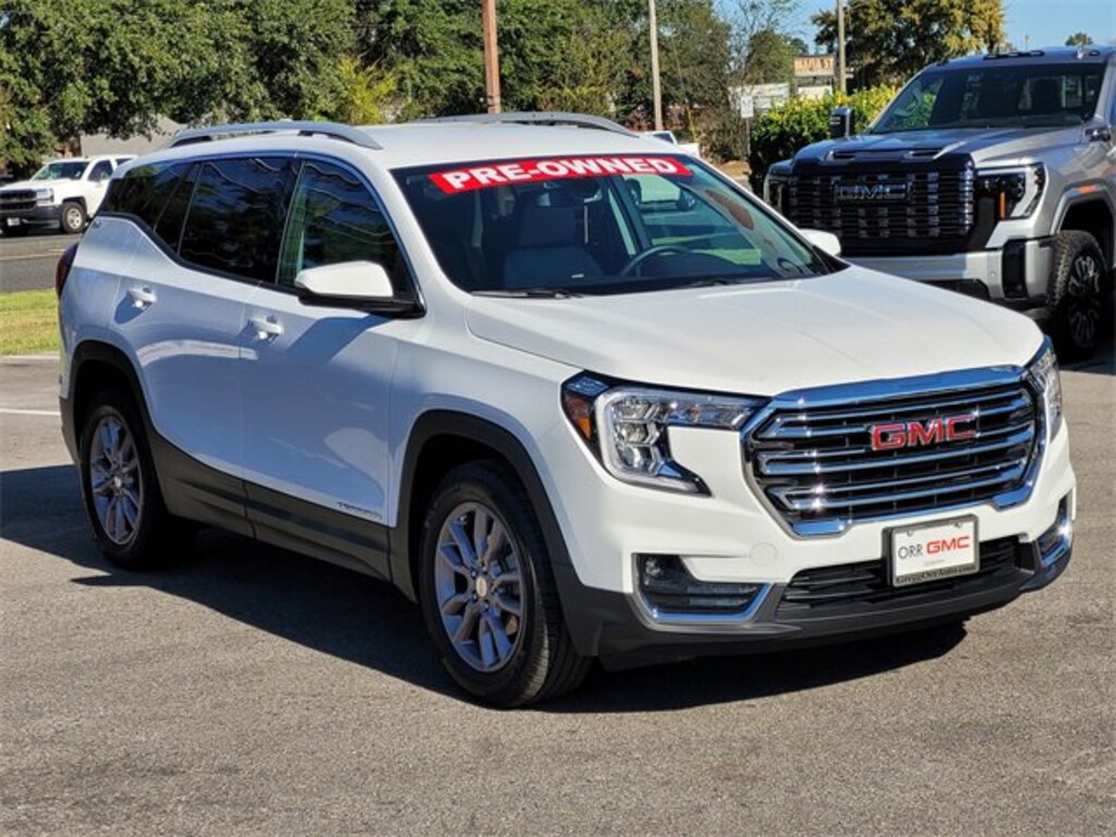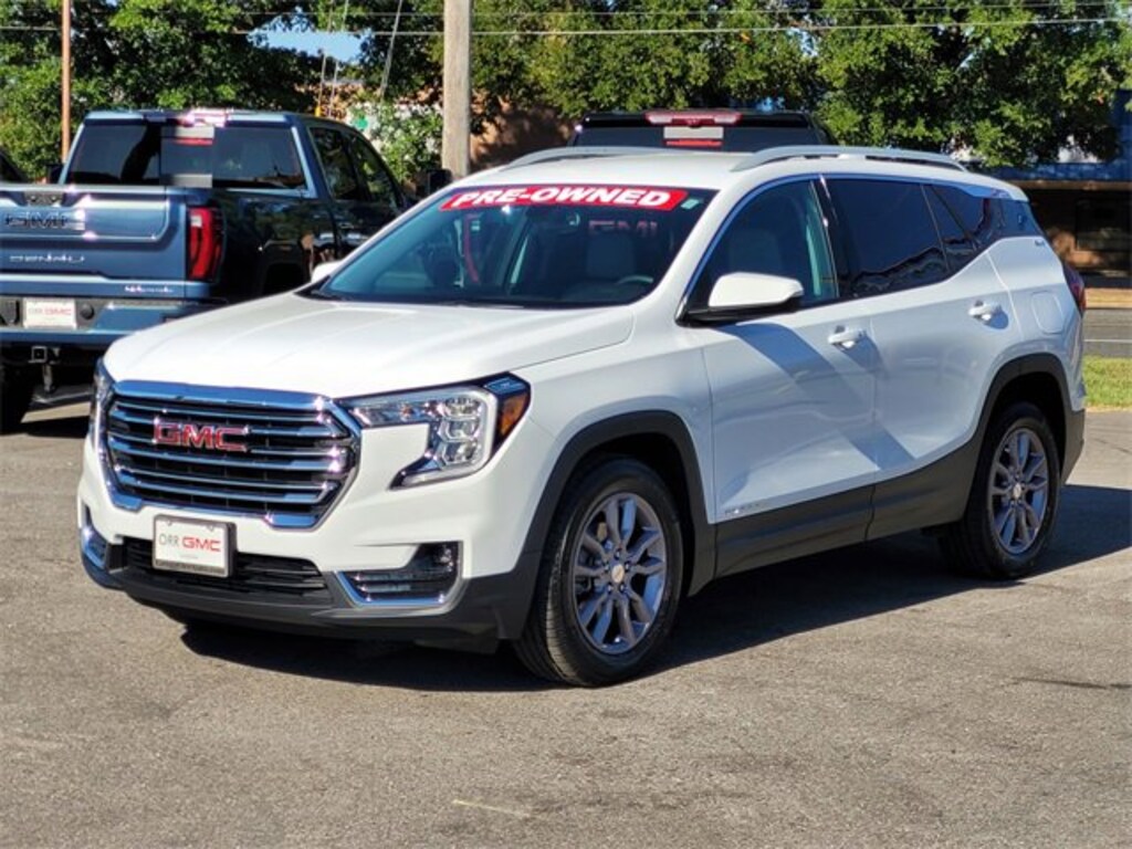 This 2024 GMC Terrain comes equipped with GMC Pro Safety Plus (Adaptive Cruise Control, Lane Change Alert w/Side Blind Zone Alert, Rear Cross-Traffic Alert, Rear Park Assist, and Safety Alert Seat), License Plate Front Mounting Package, Preferred Equipment Group 4SA, 2 USB Data Ports, 2 USB Data Ports w/SD Card Reader, 3.47 Final Drive Axle Ratio, 4-Wheel Disc Brakes, 6 Speakers, 6-Speaker Audio System Feature, 6-Way Power Front Passenger Seat, 8-Way Power Driver Seat Adjuster, ABS brakes, Air Conditioning, Alloy wheels, AM/FM radio: SiriusXM, Auto High-beam Headlights, Auto-dimming Rear-View mirror, Automatic temperature control, Bluetooth® For Phone, Brake assist, Bumpers: body-color, Compass, Delay-off headlights, Driver & Front Passenger Heated Seats, Driver door bin, Driver vanity mirror, Dual front impact airbags, Dual front side impact airbags, Electronic Stability Control, Emergency communication system: OnStar and GMC connected services capable, Four wheel independent suspension, Front anti-roll bar, Front Bucket Seats, Front Center Armrest, Front dual zone A/C, Front fog lights, Front Passenger 2-Way Power Lumbar, Front reading lights, Fully automatic headlights, Garage door transmitter, Heated door mirrors, Heated front seats, Heated steering wheel, Illuminated entry, Low tire pressure warning, Memory seat, Occupant sensing airbag, Outside temperature display, Overhead airbag, Overhead console, Panic alarm, Passenger door bin, Passenger vanity mirror, Perforated Leather-Appointed Seat Trim, Power door mirrors, Power Driver Lumbar Control, Power driver seat, Power Liftgate, Power passenger seat, Power steering, Power windows, Radio data system, Radio: GMC Infotainment Audio System w/8 Display, Rear anti-roll bar, Rear seat center armrest, Rear window defroster, Rear window wiper, Remote keyless entry, Roof rack: rails only, Security system, SiriusXM, Speed control, Speed-sensing steering, Split folding rear seat, Spoiler, Steering wheel mounted audio controls, Tachometer, Telescoping steering wheel, Tilt steering wheel, Traction control, Trip computer, Turn signal indicator mirrors, Variably intermittent wipers, Wheels: 18 x 7 Silver Painted Aluminum, and Wireless Apple CarPlay/Wireless Android Auto. Clean CARFAX. 24/29 City/Highway MPGSummit White 2024 GMC Terrain SLT 1.5L DOHC FWD 9-Speed AutomaticPlease see our hundreds of 4.5 Star Reviews on Google and Facebook. We also feature some truly incredible models for you to check out. We have an impressive Pre-Owned inventory that is full of the latest and greatest models, as well as a great selection of New inventory. We will make your purchase smooth and easy and we can provide great financing options on all of our inventory.