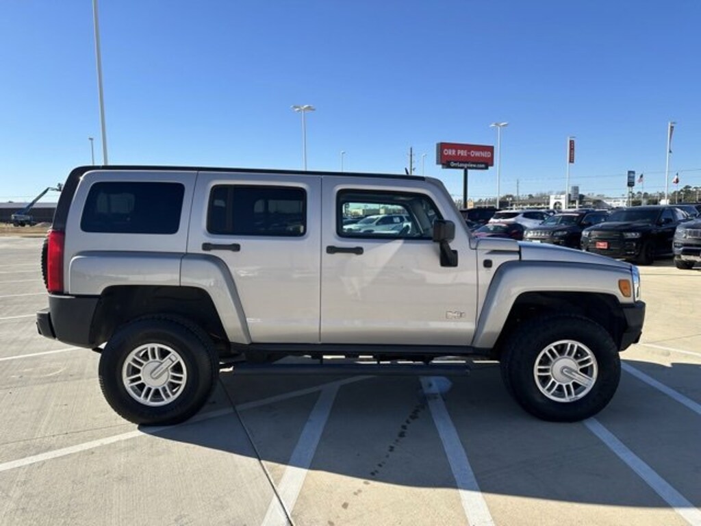 This 2006 Hummer H3 comes equipped with Heavy-Duty Handling/Trailering Suspension Package, ABS brakes, Alloy wheels, Compass, Illuminated entry, Low tire pressure warning, Remote keyless entry, Traction control, 16 x 7.5 Aluminum Wheels, 4-Wheel Disc Brakes, 4.56 Rear Axle Ratio, 6 Speakers, Air Conditioning, AM/FM radio, Auto-dimming Rear-View mirror, CD player, Cloth Seat Trim, Driver door bin, Dual front impact airbags, Emergency communication system: OnStar, Front anti-roll bar, Front Bucket Seats, Front Center Armrest, Front fog lights, Front reading lights, Front Reclining Bucket Seats, Front wheel independent suspension, Fully automatic headlights, Occupant sensing airbag, Outside temperature display, Panic alarm, Passenger door bin, Passenger vanity mirror, Power door mirrors, Power steering, Power windows, Rear anti-roll bar, Rear window defroster, Rear window wiper, Roof rack: rails only, Security system, Speed control, Split folding rear seat, Tachometer, Tilt steering wheel, Variably intermittent wipers, and Voltmeter. ABS brakes, Alloy wheels, Compass, Heavy-Duty Handling/Trailering Suspension Package, Illuminated entry, Low tire pressure warning, Remote keyless entry, Traction control.