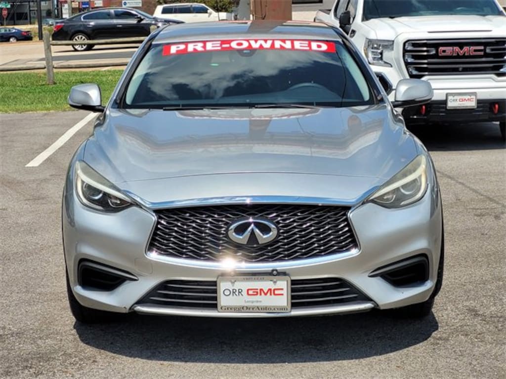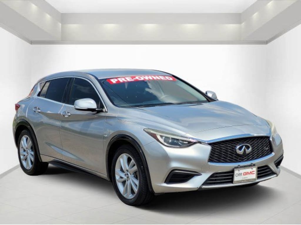 This 2018 INFINITI QX30 comes equipped with 2.654 Axle Ratio, 4-Wheel Disc Brakes, 6 Speakers, ABS brakes, Air Conditioning, Alloy wheels, AM/FM radio: SiriusXM, Auto-dimming door mirrors, Auto-dimming Rear-View mirror, Automatic temperature control, Brake assist, Bumpers: body-color, CD player, Cloth Seat Trim, Delay-off headlights, Driver door bin, Driver vanity mirror, Dual front impact airbags, Dual front side impact airbags, Electronic Stability Control, Four wheel independent suspension, Front anti-roll bar, Front Bucket Seats, Front Center Armrest, Front dual zone A/C, Front reading lights, Fully automatic headlights, Heated door mirrors, Illuminated entry, Knee airbag, Leather Shift Knob, Leather steering wheel, Low tire pressure warning, Occupant sensing airbag, Outside temperature display, Overhead airbag, Overhead console, Panic alarm, Passenger door bin, Passenger vanity mirror, Power door mirrors, Power steering, Power windows, Radio data system, Radio: AM/FM/CD/HD/SAT Audio System, Rear anti-roll bar, Rear fog lights, Rear reading lights, Rear window defroster, Rear window wiper, Remote keyless entry, Security system, Speed control, Speed-sensing steering, Split folding rear seat, Spoiler, Steering wheel mounted audio controls, Tachometer, Telescoping steering wheel, Tilt steering wheel, Traction control, Trip computer, Turn signal indicator mirrors, Variably intermittent wipers, and Wheels: 18 Silver Painted Aluminum Alloy. 24/33 City/Highway MPG