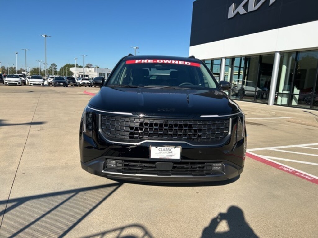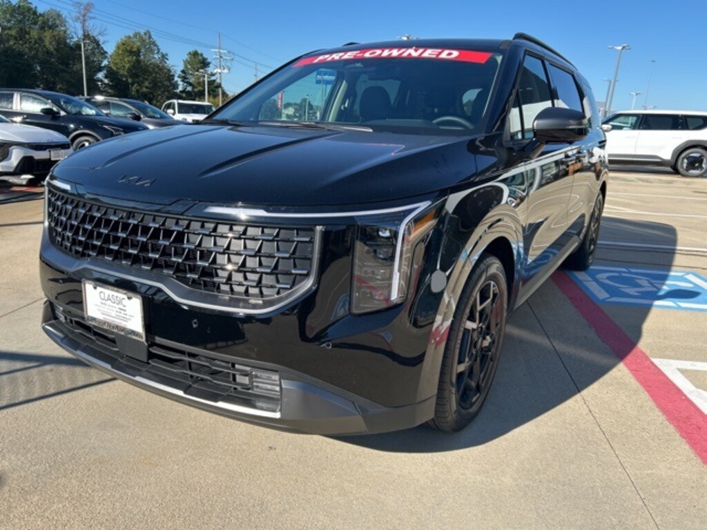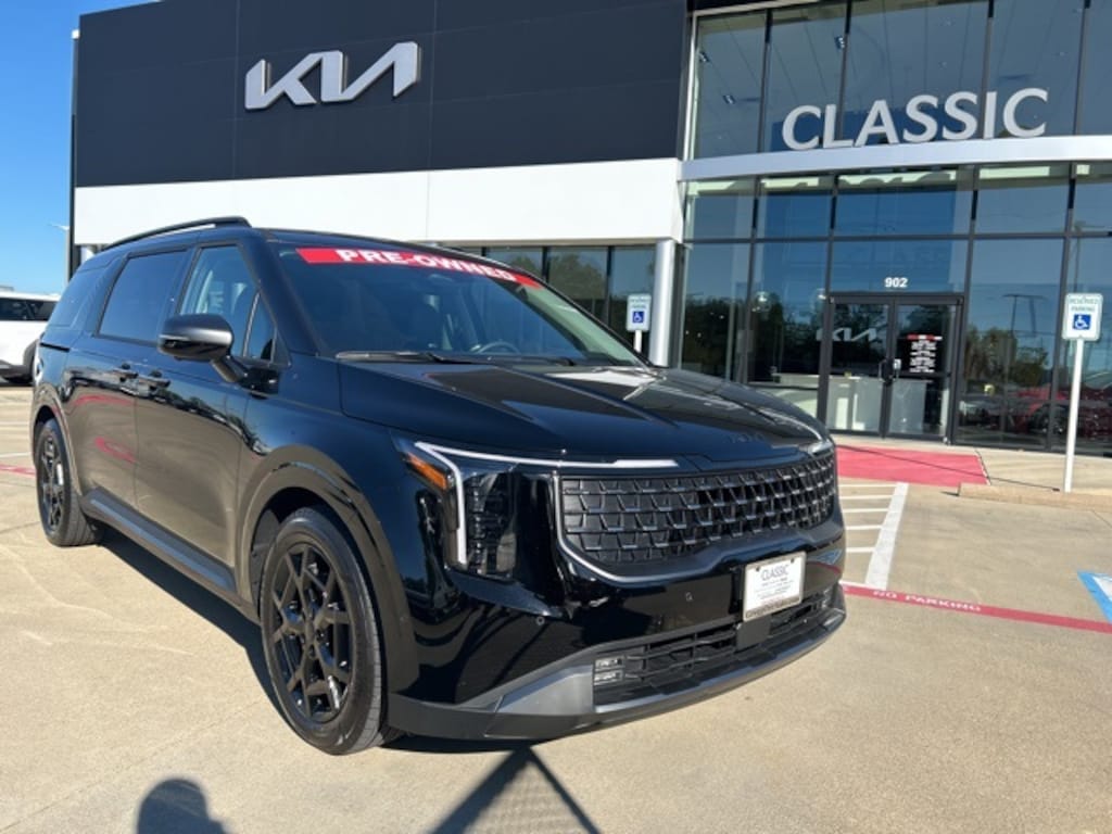 The 2026 Kia Carnival comes with the following features; Rear Seat Entertainment Package (Dual Screen Rear Seat Entertainment System), SX Prestige Seat Package (2nd Row Laminated Windows, Ambient Lighting, Heated/Ventilated 2nd Row Power Seats, and High Glossy Interior Trim), 12 Speakers, 3.51 Axle Ratio, 3rd row seats: split-bench, 4-Wheel Disc Brakes, ABS brakes, Air Conditioning, Alloy wheels, AM/FM radio: SiriusXM, Apple CarPlay & Android Auto, Auto High-beam Headlights, Auto-dimming Rear-View mirror, Automatic temperature control, Brake assist, Bumpers: body-color, Cargo Net, Compass, Delay-off headlights, Driver door bin, Driver vanity mirror, Dual front impact airbags, Dual front side impact airbags, Electronic Stability Control, Emergency communication system, Exterior Parking Camera Rear, Four wheel independent suspension, Front anti-roll bar, Front Bucket Seats, Front Center Armrest, Front dual zone A/C, Front fog lights, Front reading lights, Fully automatic headlights, Garage door transmitter: HomeLink, Heads-Up Display, Heated & Ventilated Front Bucket Seats, Heated door mirrors, Heated front seats, Heated steering wheel, Illuminated entry, Knee airbag, Leather Shift Knob, Leather steering wheel, Low tire pressure warning, Luxury All Weather Floor Mats, Memory seat, Navigation System, Occupant sensing airbag, Outside temperature display, Overhead airbag, Overhead console, Panic alarm, Passenger door bin, Passenger vanity mirror, Power 2nd-Row Moonroof, Power door mirrors, Power driver seat, Power Liftgate, Power moonroof, Power passenger seat, Power steering, Power windows, Pure Leather Seat Trim, Radio: AM/FM/HD Audio System, Rain sensing wipers, Rear air conditioning, Rear anti-roll bar, Rear reading lights, Rear window defroster, Rear window wiper, Reclining 3rd row seat, Remote keyless entry, Security system, Speed control, Speed-sensing steering, Split folding rear seat, Spoiler, Steering wheel mounted audio controls, Tachometer, Telescoping steering wheel, Tilt steering wheel, Traction control, Trip computer, Turn signal indicator mirrors, Variably intermittent wipers, Ventilated front seats, and Wheels: 7.5J x 19" Alloy Dark Edition.