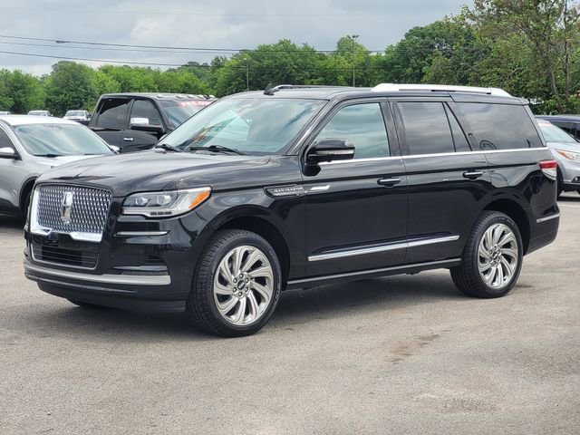 This 2024 Lincoln Navigator comes equipped with Equipment Group 200A Reserve, 4WD, Black Onyx Leather, Navigation system: Connected Navigation (1-year trial), 14 Speakers, 3.73 Axle Ratio, 3rd row seats: split-bench, 4-Wheel Disc Brakes, ABS brakes, Adaptive suspension, Adjustable pedals, Air Conditioning, Alloy wheels, AM/FM radio: SiriusXM with 360L, Apple CarPlay/Android Auto, Audio memory, Auto High-beam Headlights, Auto Start-Stop Technology, Auto tilt-away steering wheel, Auto-dimming door mirrors, Auto-dimming Rear-View mirror, Auto-leveling suspension, Automatic temperature control, Bodyside moldings, Brake assist, Bumpers: body-color, Compass, Delay-off headlights, Driver door bin, Driver vanity mirror, Driver's Seat Mounted Armrest, Dual front impact airbags, Dual front side impact airbags, Electronic Stability Control, Emergency communication system: 911 Assist, Exterior Parking Camera Rear, Four wheel independent suspension, Front anti-roll bar, Front Bucket Seats, Front dual zone A/C, Front fog lights, Front License Plate Bracket, Front reading lights, Fully automatic headlights, Garage door transmitter, Genuine wood dashboard insert, Genuine wood door panel insert, Head restraints memory, Heads-Up Display, Heated door mirrors, Heated front seats, Heated rear seats, Heated steering wheel, HVAC memory, Illuminated entry, Lane Departure Warning System, Leather steering wheel, Low tire pressure warning, Memory seat, Occupant sensing airbag, Outside temperature display, Overhead airbag, Overhead console, Panic alarm, Passenger door bin, Passenger seat mounted armrest, Passenger vanity mirror, Pedal memory, Power adjustable rear head restraints, Power door mirrors, Power driver seat, Power Liftgate, Power moonroof: Panoramic Vista Roof, Power passenger seat, Power steering, Power windows, Prem Lthr Auto Htd/Ventiltd Perfect Position Seats, Radio data system, Radio: Revel Audio System w/Satelllite/AM/FM/HD, Rain sensing wipers, Rear air conditioning, Rear anti-roll bar, Rear audio controls, Rear reading lights, Rear window defroster, Rear window wiper, Reclining 3rd row seat, Remote keyless entry, Security system, SiriusXM w/360L, Speed control, Speed-sensing steering, Speed-Sensitive Wipers, Split folding rear seat, Spoiler, Steering wheel memory, Steering wheel mounted audio controls, SYNC 4 Communications & Entertainment System, Tachometer, Telescoping steering wheel, Tilt steering wheel, Traction control, Trip computer, Turn signal indicator mirrors, Variably intermittent wipers, Ventilated front seats, Ventilated rear seats, Voice-Activated Touchscreen Navigation System, and Wheels: 22 Bright Machined Aluminum. CARFAX One-Owner. Priced below KBB Fair Purchase Price! Carfax no accidents, 4WD, Black Onyx Leather, Equipment Group 200A Reserve, Navigation system: Connected Navigation (1-year trial).