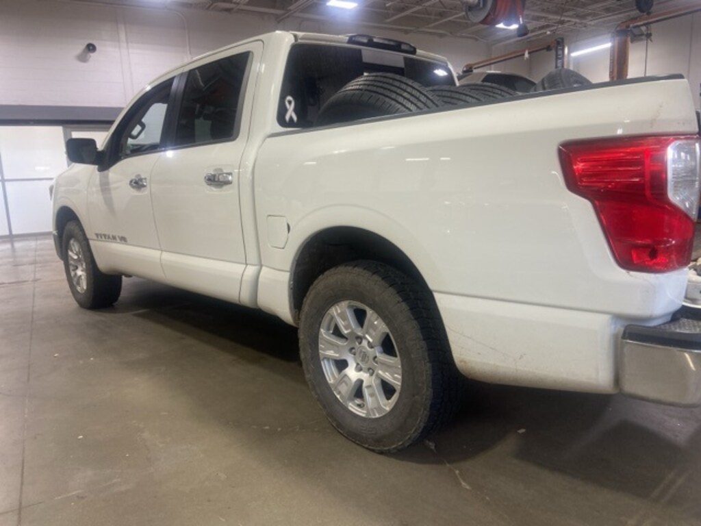 This 2018 Nissan Titan comes equipped with the following features 4WD, 2.937 Axle Ratio, 4-Wheel Disc Brakes, 6 Speakers, ABS brakes, Activation Disclaimer, Air Conditioning, Alloy wheels, AM/FM radio: SiriusXM, Brake assist, Bumpers: chrome, Carpeted Floor Mats, CD player, Cloth Seat Trim, Driver door bin, Driver vanity mirror, Dual front impact airbags, Dual front side impact airbags, Electronic Stability Control, Front anti-roll bar, Front Center Armrest w/Storage, Front Manual Split Bench Seat (40/20/40), Front reading lights, Front wheel independent suspension, Heated door mirrors, Heated Front Captain's Chairs, Illuminated entry, Leather Seat Trim, Low tire pressure warning, Occupant sensing airbag, Outside temperature display, Overhead airbag, Overhead console, Panic alarm, Passenger door bin, Passenger vanity mirror, Power door mirrors, Power steering, Power windows, Radio data system, Radio: NissanConnect AM/FM w/SiriusXM, Rear anti-roll bar, Rear seat center armrest, Rear step bumper, Rear window defroster, Remote keyless entry, Security system, Speed control, Speed-sensing steering, Speed-Sensitive Wipers, Split folding rear seat, Steering wheel mounted audio controls, Tachometer, Telescoping steering wheel, Tilt steering wheel, Traction control, Trip computer, Turn signal indicator mirrors, Variably intermittent wipers, Voltmeter, and Wheels: 18" x 8" Silver Painted Alloy. 4WD. 2018 Nissan Titan SV 4WD 5.6L V8