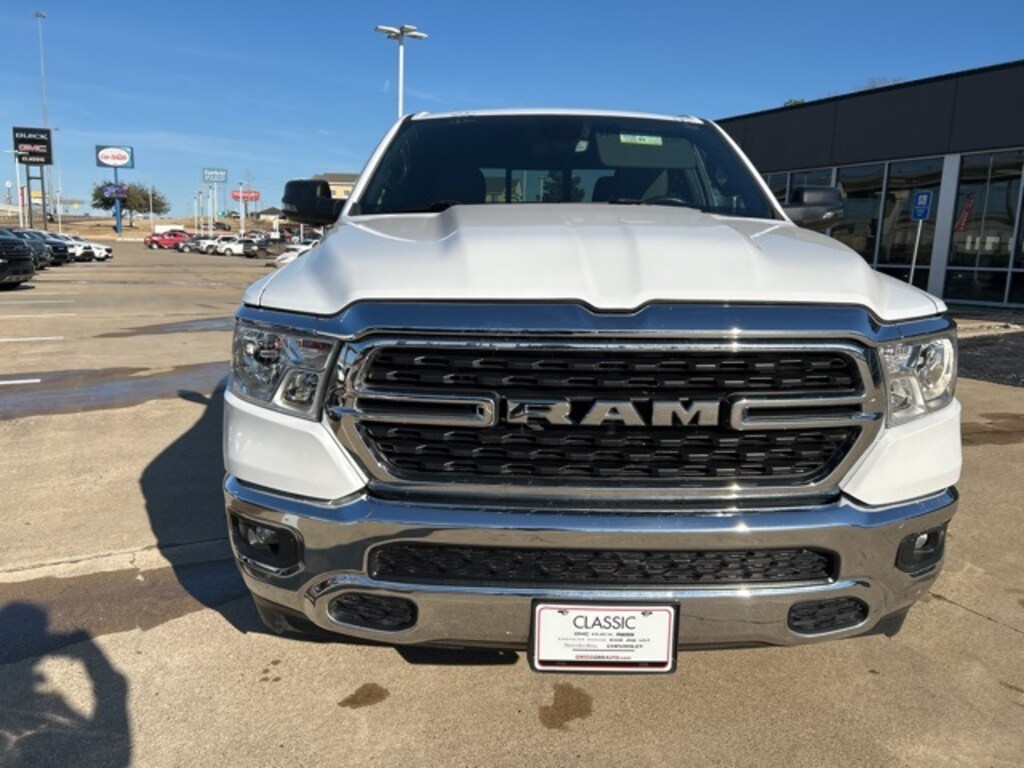 This 2023 Ram 1500 comes equipped with the following features Big Horn Level 1 Equipment Group (2nd Row In Floor Storage Bins, 4G LTE Wi-Fi Hot Spot, 8.4" Touchscreen Display, Apple CarPlay, Auto-Dimming Exterior Driver Mirror, Auto-Dimming Rear-View Mirror, Black Exterior Mirrors, Black Premium Power Mirrors, Bluetooth Handsfree Phone & Audio, Class IV Receiver Hitch, Connectivity - US/Canada, Convex Wide-Angle Exterior Mirror Insert, Exterior Mirrors Courtesy Lamps, Exterior Mirrors w/Heating Element, Exterior Mirrors w/Supplemental Signals, For Details, Visit DriveUconnect.com, For More Info, Call 800-643-2112, Front Fog Lamps, Glove Box Lamp, Google Android Auto, GPS Antenna Input, Heated Front Seats, Heated Steering Wheel, Integrated Center Stack Radio, Passenger Sun Visor w/Illuminated Mirror, Power-Folding Mirrors, Radio: Uconnect 5 W w/8.4" Display, Rear Dome w/On/Off Switch Lamp, Rear Power Sliding Window, Rear Window Defroster, SiriusXM Satellite Radio, and USB Host Flip), Quick Order Package 23Z Big Horn (Big Horn Badge), Quick Order Package 27Z Big Horn, Trailer Tow Group (Trailer Brake Control, Trailer Light Check, Trailer Reverse Steering Control, Trailer Tire Pressure Monitoring System, and Trailer Tow Mirrors), 3 Rear Seat Head Restraints, 3.21 Rear Axle Ratio, 4 Way Front Headrests, 4-Wheel Disc Brakes, 48V Belt Starter Generator, 6 Speakers, ABS brakes, Air Conditioning, Alloy wheels, AM/FM radio, Anti-Spin Differential Rear Axle, Black Trailer Tow Power Mirrors (DISC), Brake assist, Bumpers: chrome, Cloth Bench Seat, Compass, Delay-off headlights, Driver door bin, Dual front impact airbags, Dual front side impact airbags, Electronic Stability Control, Emergency communication system: SiriusXM Guardian, Exterior Parking Camera Rear, Front anti-roll bar, Front Center Armrest w/Storage, Front License Plate Bracket, Front reading lights, Front Seat Back Map Pockets, Front wheel independent suspension, Fully automatic headlights, Global Telematics Box Module (TBM), Heated door mirrors, Illuminated entry, Integrated Voice Command w/Bluetooth, Leather steering wheel, Low tire pressure warning, Manufacturer's Statement of Origin, MOPAR Front & Rear Rubber Floor Mats, Occupant sensing airbag, Outside temperature display, Overhead airbag, Overhead console, Panic alarm, Passenger door bin, Passenger vanity mirror, Power door mirrors, Power steering, Power windows, Radio data system, Radio: Uconnect 3 w/5" Display, RAM Grille Badge - Chrome, Rear 60/40 Folding Seat, Rear anti-roll bar, Rear seat center armrest, Rear step bumper, Remote keyless entry, Speed control, Split folding rear seat, Steering wheel mounted audio controls, Tachometer, Telescoping steering wheel, Tilt steering wheel, Traction control, Trip computer, Variably intermittent wipers, Voltmeter, Wheels: 18" x 8" Cast-Aluminum Painted, and Wheels: 20" x 9" Aluminum Chrome Clad (WRK) CARFAX One-Owner. 2023 Ram 1500 Big Horn/Lone Star RWD HEMI 5.7L V8 Multi Displacement VVT eTorque