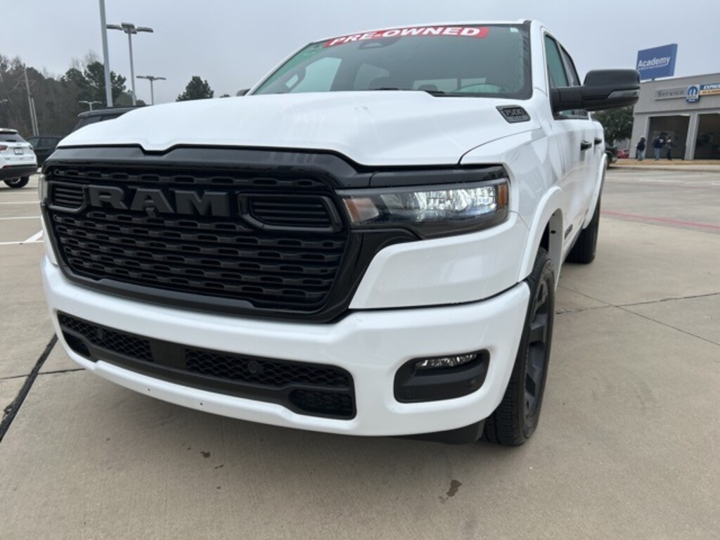 Clean CARFAX. Classic CDJR in Texarkana is proud to offer this wonderful 2025 Ram 1500 in Bright White Clearcoat. This 2025 Ram 1500 comes with the following features; Big Horn Level 2 Equipment Group (115V Auxiliary Power Outlet, 115V Auxiliary Rear Power Outlet, 12" Touchscreen Display, 2nd Row In Floor Storage Bins, 400W Inverter, 4G LTE Wi-Fi Hot Spot, 9 Amplified Speakers w/Subwoofer, Air Conditioning ATC w/Dual Zone Control, Apple CarPlay, Auto Power-Folding Mirrors, Auto-Dimming Exterior Driver Mirror, Auto-Dimming Rear-View Mirror, Black Exterior Mirrors, Black Premium Power Mirrors, Cluster 7.0" TFT Color Display, Configurable Drive Mode, Connected Travel & Traffic Services, Connectivity - US/Canada, Convex Wide-Angle Exterior Mirror Insert, Exterior Mirrors Courtesy Lamps, Exterior Mirrors w/Heating Element, Exterior Mirrors w/Supplemental Signals, Glove Box Lamp, Google Android Auto, GPS Antenna Input, GPS Navigation, HD Radio, Heated Front Seats, Heated Steering Wheel, Integrated Voice Command w/Bluetooth, Leather Wrapped Steering Wheel, LED Dome Lamp w/On/Off Switch, LED Footwell Lighting, Media Hub w/2 Charge Only USBs, Overhead LED Lamps, Power 2-Way Driver Lumbar Adjust, Power Adjust 8-Way Driver Seat, Power Adjustable Pedals, Premium Overhead Console, Radio: Uconnect 5 Nav w/12.0" Display, Rear Power Sliding Window, Rear Window Defroster, Remote Tailgate Release, Security Alarm, SiriusXM w/360L, Steering Wheel Mounted Audio Controls, Sun Visors w/Illuminated Vanity Mirrors, Universal Garage Door Opener, and USB Host Flip), Night Edition (3 Rear Seat Head Restraints, 4 Way Front Headrests, Accent Color Door Handles, Accent Color Premium Power Mirrors, Accent Color Tailgate Handle, Anti-Spin Differential Rear Axle, Black Exterior Truck Badging, Black Headlamp Bezels, Black Interior Accents, Black Painted Exterior Mirrors Caps, Black Tail Lamp Bezels, Body Color Front Bumper, Body Color Rear Bumper w/Step Pads, Bucket Seats, Deluxe Cloth Bucket Seats, Front Seat Back Map Pockets, Full Length Floor Console, Grille Black Surround Black Mesh, Manual Adjust 4-Way Front Passenger Seat, RAM Grille Badge - Black, Rear 60/40 Folding Seat, Rear Center Armrest, and Wheels: 20" x 9.0" Aluminum Painted Clad), Quick Order Package 21Z Big Horn, Quick Order Package 23Z Big Horn (Big Horn Badge), 4-Wheel Disc Brakes, 6 Speakers, ABS brakes, Air Conditioning, Alloy wheels, AM/FM radio, Apple CarPlay/Android Auto, Auto High-beam Headlights, Brake assist, Bumpers: chrome, Cloth Bench Seat, Compass, Delay-off headlights, Driver door bin, Dual front impact airbags, Dual front side impact airbags, Electronic Stability Control, Front anti-roll bar, Front Center Armrest w/Storage, Front fog lights, Front reading lights, Front wheel independent suspension, Fully automatic headlights, Heated door mirrors, Illuminated entry, Low tire pressure warning, Manual Folding Exterior Mirrors, MOPAR Front & Rear Rubber Floor Mats, Occupant sensing airbag, Outside temperature display, Overhead airbag, Overhead console, Panic alarm, ParkView Rear Back-Up Camera, Passenger door bin, Passenger vanity mirror, Power door mirrors, Power steering, Power windows, Radio data system, Radio: Uconnect 5 W w/8.4" Display, RAM Grille Badge - Chrome, Rear anti-roll bar, Rear seat center armrest, Rear step bumper, Remote keyless entry, Speed control, Split folding rear seat, Supplier Part Tracking (J-1), Tachometer, Telescoping steering wheel, Tilt steering wheel, Traction control, Trailer Brake Control, Trip computer, Variably intermittent wipers, Voltmeter, and Wheels: 18" x 8" Cast-Aluminum Painted.